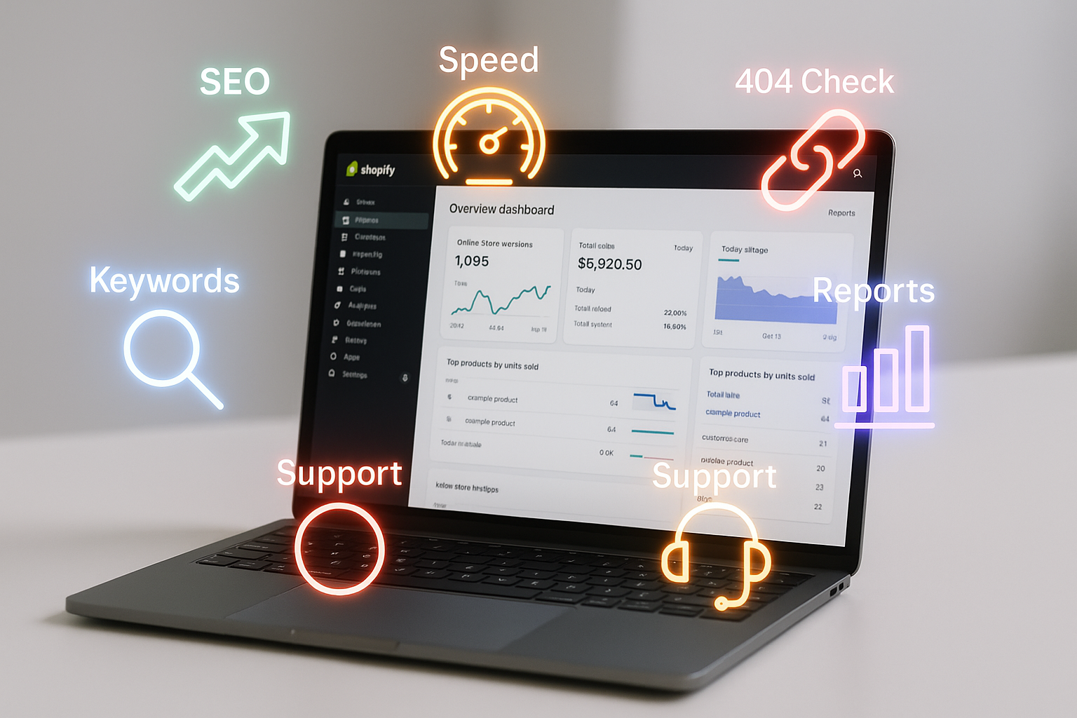 Unlock the full potential of your Shopify store with our expert audit and consultancy service. We take a deep dive into your store’s performance, design, and marketing setup to identify what’s working and where improvements are needed. From technical checks to conversion-focused recommendations, you’ll receive clear, actionable insights to grow smarter and faster.